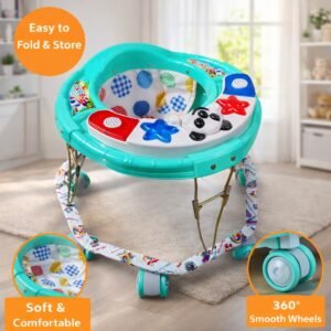 Foldable Baby Walker with Music, Lights & Toy Tray | Adjustable Height Baby Activity Walker for