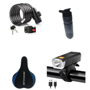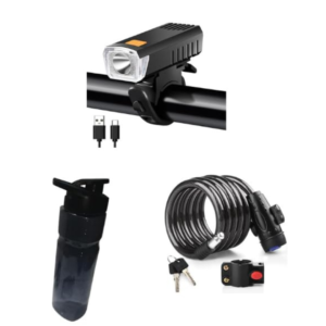 USB Rechargeable Bicycle Front Light, Security Lock & Water Bottle Combo | Universal Cycling Ac
