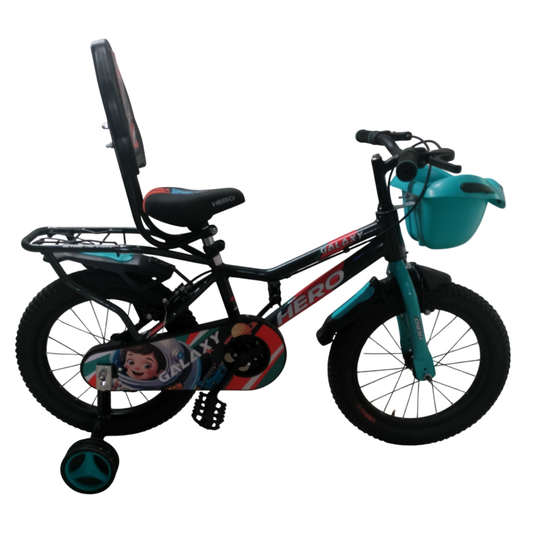 Spark their first big-kid adventures with the Hero Galaxy 16T — a sturdy, stylish 16-inch kids’ bicycle built for safety, comfort and easy handling. Designed for children aged 3–6 years, this single-speed bike comes 90% pre-assembled, so parents can get kids riding fast. The lightweight yet durable frame, grippy tyres and comfortable saddle with a seat taker (safety backrest) give growing riders confidence while learning balance and control. Finished in classic black with kid-friendly styling, the Galaxy 16T includes training-wheel compatibility, a reliable coaster brake and thoughtful safety touches for worry-free family rides.