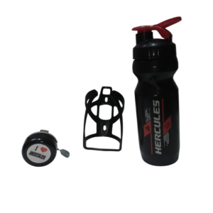 Hercules Bicycle Accessories Combo Set, Universal MTB Water Bottle with Holder, Cable Lock and Bell, Black and Green, Steel Construction, 25 x 20 x 10 cm