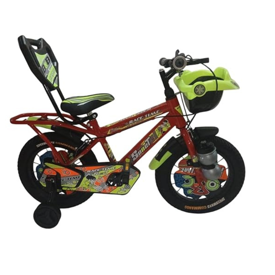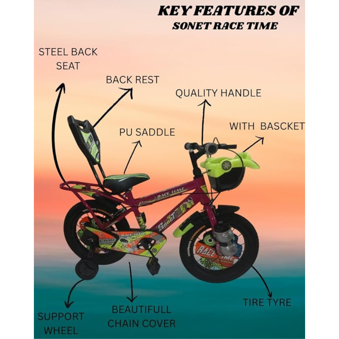 Kid's BikeRace Time Sonet 14T Kids Bicycle | 14-Inch Tyres with Balance Wheels & Back Rest | 9-Inch Steel